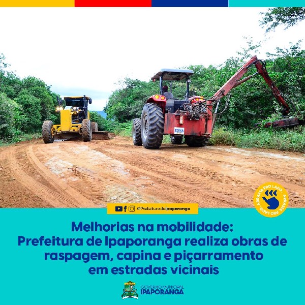 Após a quadra invernosa, a Prefeitura de Ipaporanga está empenhada nas recuperações das estradas vicinais em todo o município! As obras incluem raspagem, piçarramento em alguns trechos e serviços de capina e roçagem das laterais das estradas.