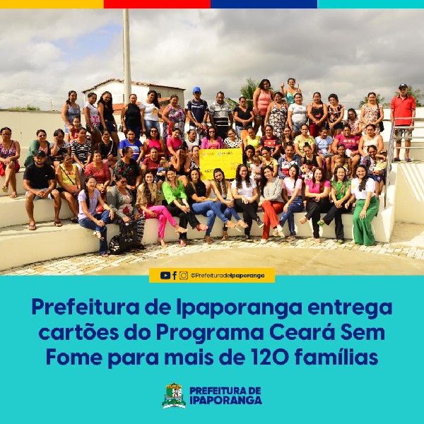 O Programa Ceará Sem Fome beneficiará mais famílias em Ipaporanga. No total, 121 pessoas estão sendo contempladas neste ano. As equipes da Secretaria de Assistência Social e do CRAS de Ipaporanga realizaram a entrega dos cartões nesta quinta-feira (15). Cada cartão oferece um auxílio mensal de R$ 300 para aquisição de itens alimentícios, garantindo assim o acesso a uma alimentação adequada.