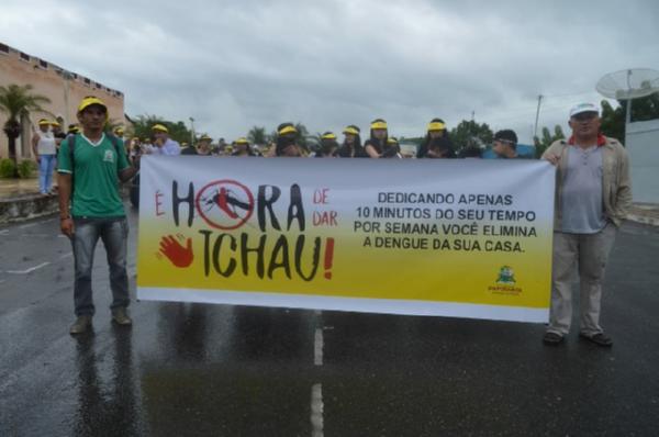 Como parte da Campanha Municipal e Intersetorial de Combate à Dengue e ao Mosquito Aedes Aegypt, o Governo Municipal de Ipaporanga realizou, nesta sexta (26), uma caminhada pelas ruas da Sede, sob o tema "É HORA DE DAR TCHAU!". A ação, iniciada na Praça da Matriz, percorreu os pontos com maior fluxo na cidade, a exemplo das ruas Franklin José Vieira, Augusto Evaristo e Pedro Correia Leitão, até o ponto de chegada no Ginásio Municipal Expedito Sousa Lima. A mobilização teve participação direta de diversos grupos e entidades da sociedade e administração municipal, como agentes de endemias e vigilância, crianças assistidas pelo serviço de convivência do CRAS, alunos da rede pública do Município e Estado, participantes do Projeto Crescendo com a Arte (desenvolvido pela Secretaria de Cultura e Turismo), servidores das secretarias de Saúde, Assistência Social e Agricultura e integrantes do NUCA. Vale destacar ainda que, após a passeata, foram realizadas apresentações teatrais e culturais, com vistas a informar os presentes sobre a importância da prevenção e combate à dengue. Na ocasião, participaram do evento a Secretária de Assistência Social e Vice-Prefeita, Daiana Diogo, bem como o Secretário de Saúde, Rodrigo Batista, e a Coordenadora do Núcleo de Atenção Básica, Antônia de Maria Oliveira.